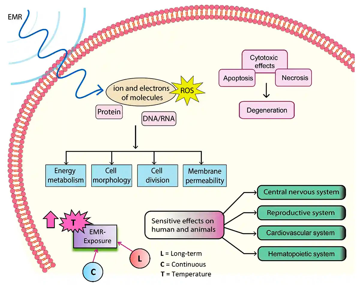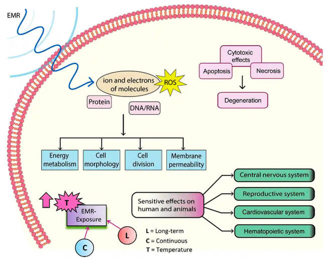 Además, la EMR tiene efectos citotóxicos en las células al causar degeneración, apoptosis y necrosis.