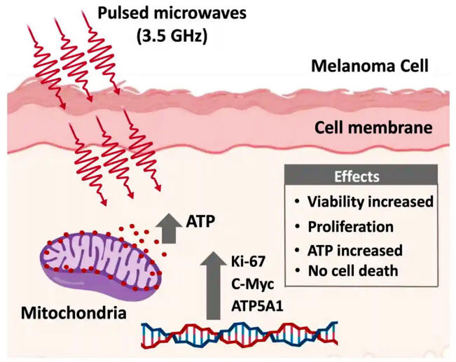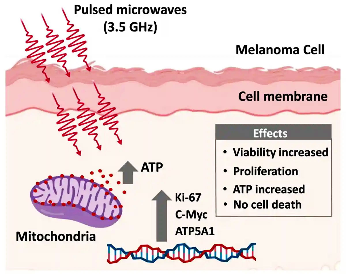 También se estudiaron los efectos de la HPM (microndas de alta potencia) pulsada a una frecuencia de 3,5 GHz sobre las células normales de fibroblastos de la piel.